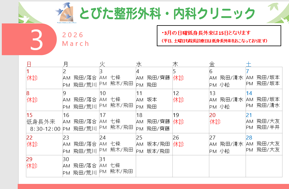 3月診療予定