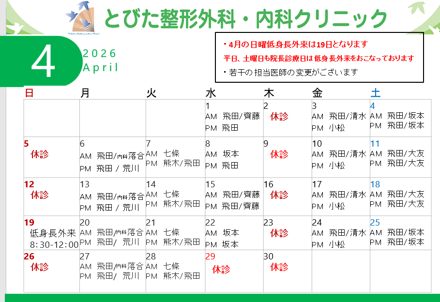4月診療予定